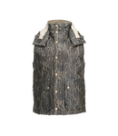 Designed with the waterfowl hunter in mind, the Fowler Vest has an 8.25 ounce waxed cotton shelter cloth outer shell that will develop a rich patina with wear. This insulated hunting vest features a detachable, insulated hood with adjustable drawstrings and scalloped shape for maximum visibility. Oversized front handwarmer pockets are lined with soft, warm moleskin. Front bellow pockets provide ample storage for shells and other essentials. The interior has three pockets, including one with a zipper closure to keep valuables secure. A liner inspired by Alabama red clay adds a touch of color to the interior, and a collar stand lined with soft corduroy provides welcome protection from the cold. Durable antique brass hardware snaps and two-way main zipper.