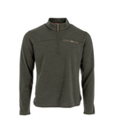This men's quarter zip has a classic fit that sits comfortably close to the body. The shell fabric is a blend of polyester (68%), wool (29%), and spandex (3%).