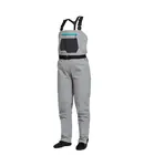 These new Women’s Clearwater fly fishing waders are feature-rich and streamlined to eliminate traditional bulk. Four-layer waterproof breathable nylon fabric is light yet durable, with a 30K Waterproofness/8K Breathability rating. Opposing side-release buckles allow for waist-high conversion on warm days. External storage pocket with stretch panel for small items and fly boxes, plus a kangaroo-style handwarmer pocket on the front chest. Updated anatomical neoprene booties with Integrated neoprene gravel guards to reduce water drag and collection. Low-profile seam construction and low-profile belt loops with 1½" webbing belt included. Hook-and-loop patch on the interior pocket to attach the Orvis waterproof pocket (8G3H sold separately).