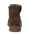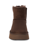 Vegan platform ankle boot lined with faux fur.